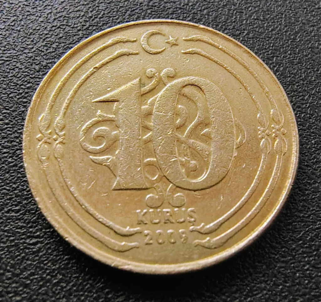 🔸 O valor 10 kuruş representa uma fração da lira (1 lira = 100 kuruş), sendo uma denominação comum no uso diário.