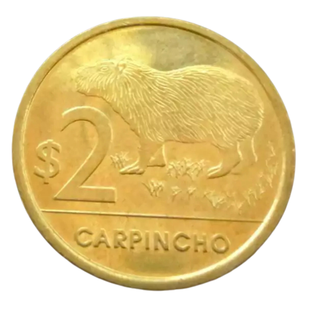 Parte do período de circulação normal, esta moeda exibe a imagem do carpincho, um animal icônico e símbolo nacional do Uruguai. Sua beleza e singularidade fazem dela uma adição indispensável à sua coleção.