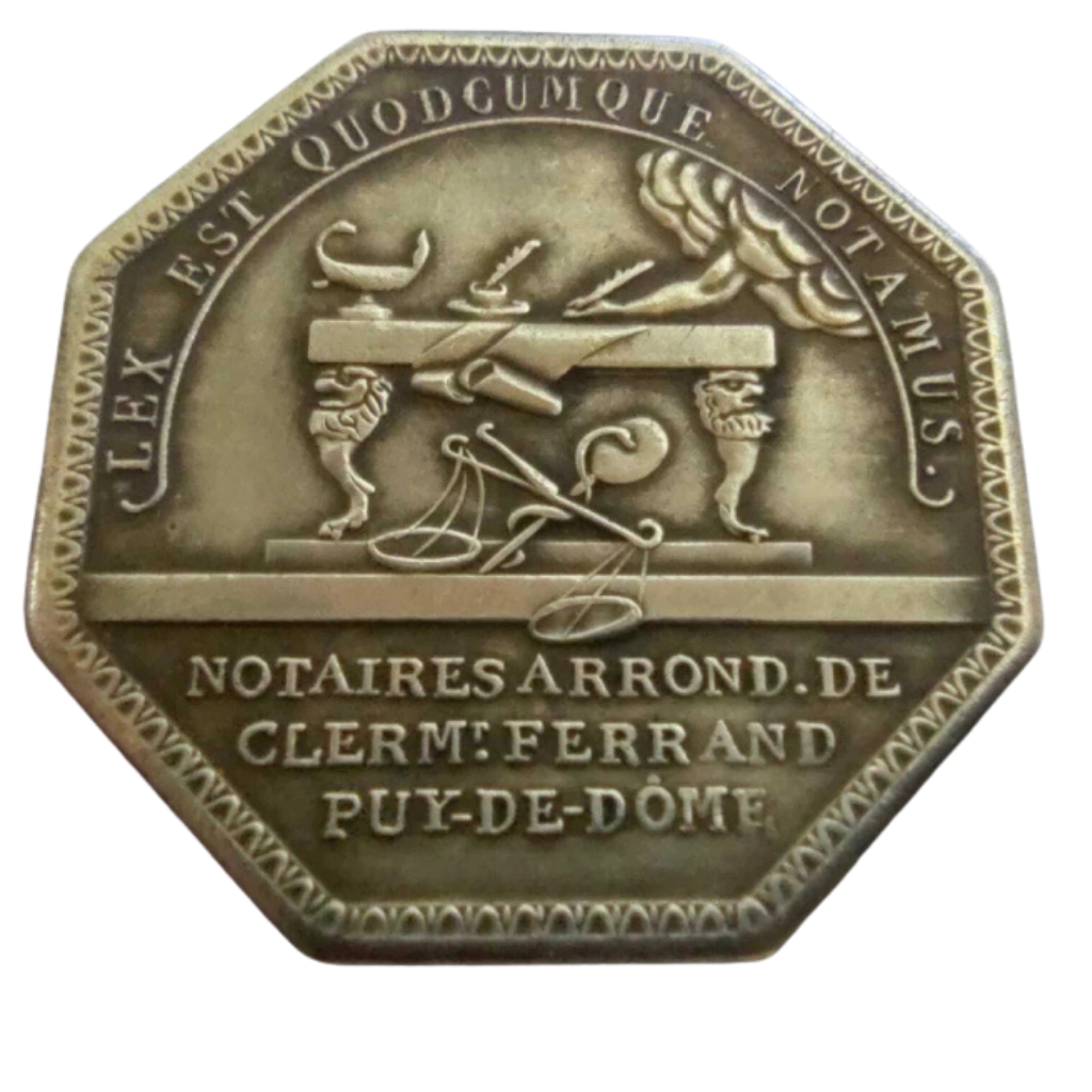 Adicione à sua coleção a Medalha Notários de Clermont-Ferrand, uma peça histórica que remete ao tempo de Napoleão como imperador e rei. Com um design octogonal e 33mm de diâmetro, esta medalha é um verdadeiro tesouro para os amantes da numismática.