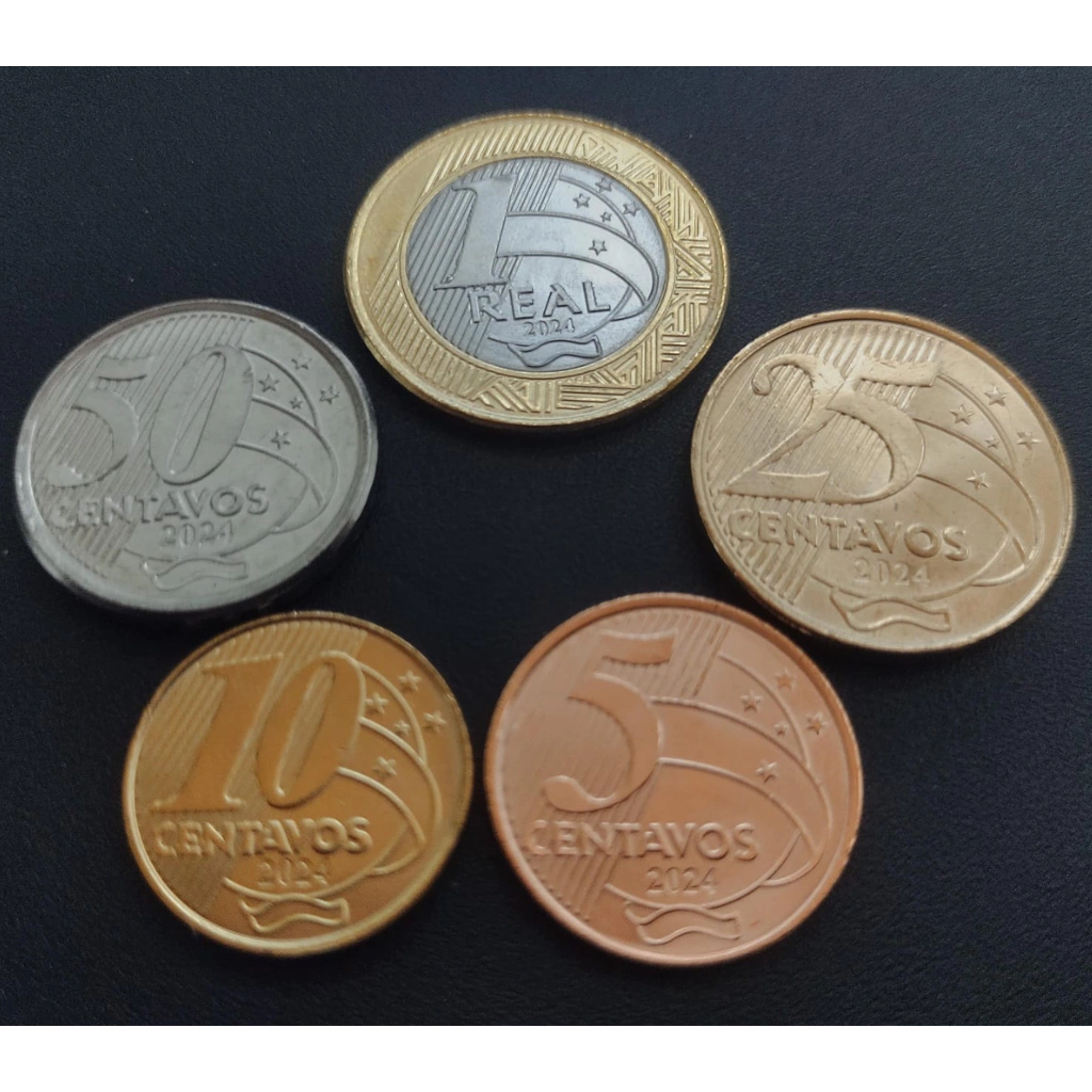 Descubra a beleza e a riqueza do Set 2024 Flor de Cunho, uma coleção imperdível para colecionadores e amantes da numismática! Este conjunto inclui moedas de 1 Real, 50 centavos, 25 centavos, 10 centavos e 5 centavos, todas com uma efígie deslumbrante que captura a essência do Brasil. total 5 moedas.